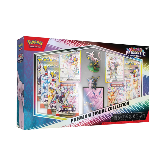 Als Stellar Tera Pokémon ex verschijnen Espeon en Umbreon met krachtige effecten die je tegenstander flink kunnen ontregelen. Naast prachtige promos bevat deze set een figure, pin, card sleeves en maar liefst 11 booster packs uit Scarlet & Violet – Prismatic Evolutions.